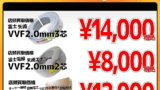 特にVVF2x2.0を5,500円→6,000円とVVF3×1.6を5,300円→6,000円と価格を大幅UP致しましたのでこの機会に是非当店までお売りくださいませ!