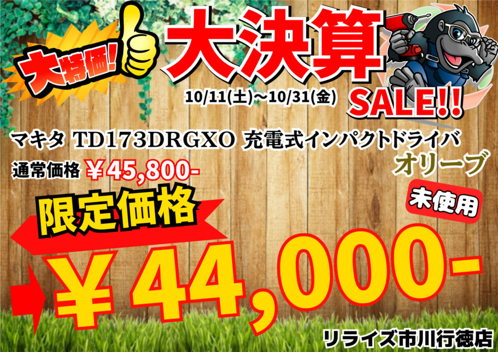 本日 10月11日(土)より、【大決算バーゲン】を開催しております!😎