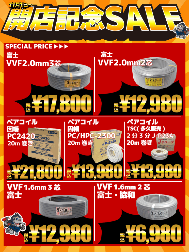 電線・配管も大セール!お値段かなり頑張らせていただきました!!