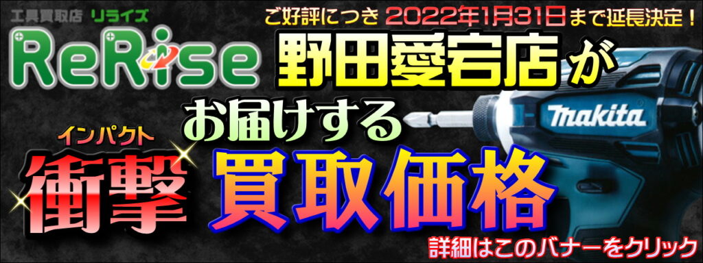 いつも工具買取販売専門店リライズ野田愛宕店をご利用いただき誠にありがとうございます。