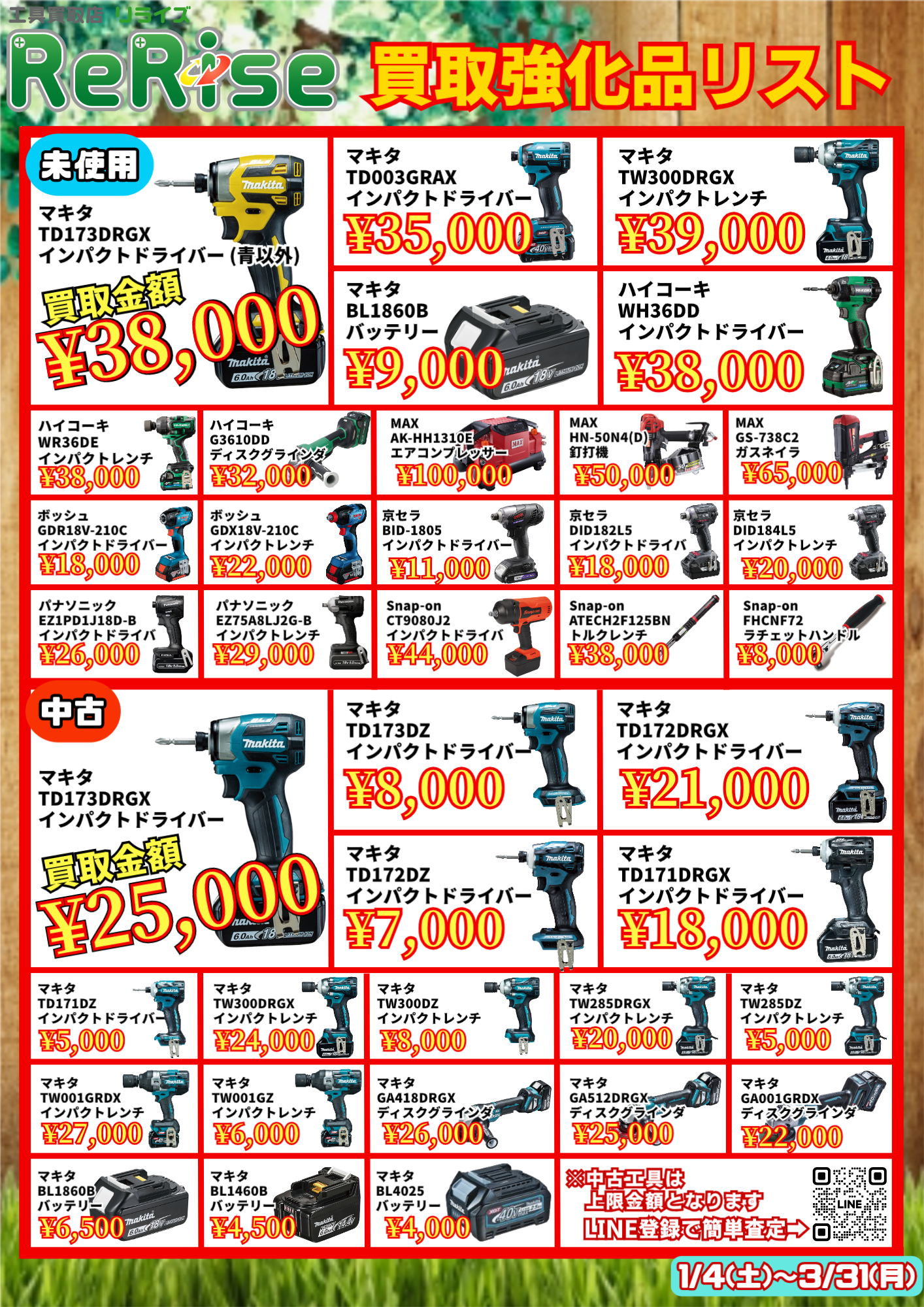 ②対象の中古・未使用工具の買取金額up‼