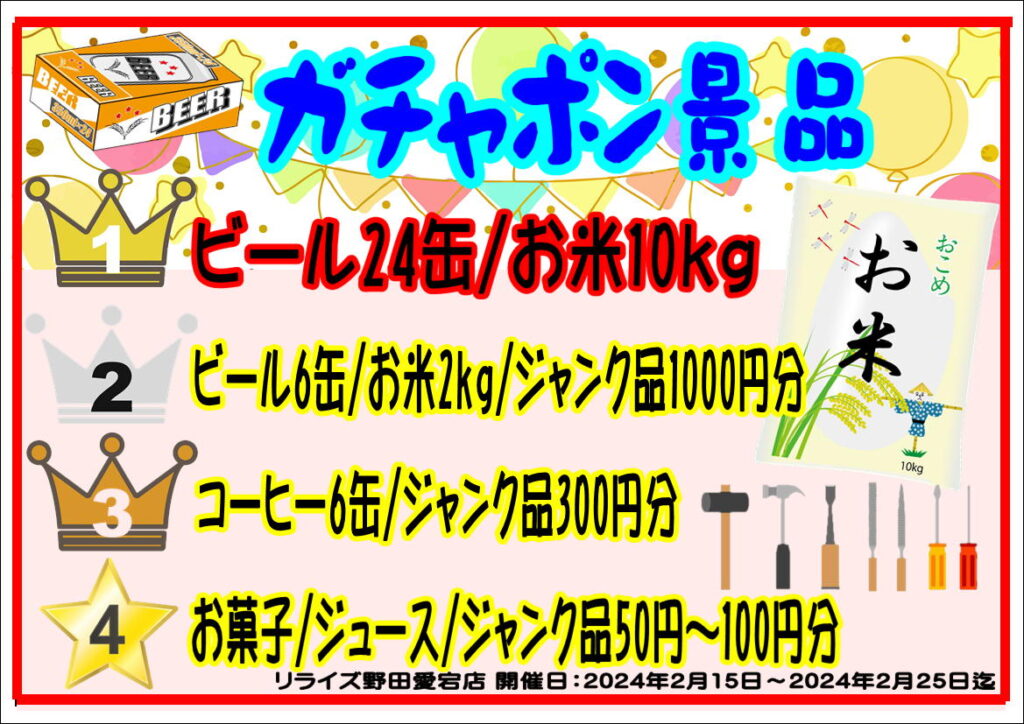 参加条件を満たした際にガチャガチャを引いていただくことで