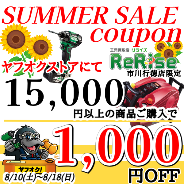 「15,000円以上の商品購入で1,000円オフクーポン発行!」