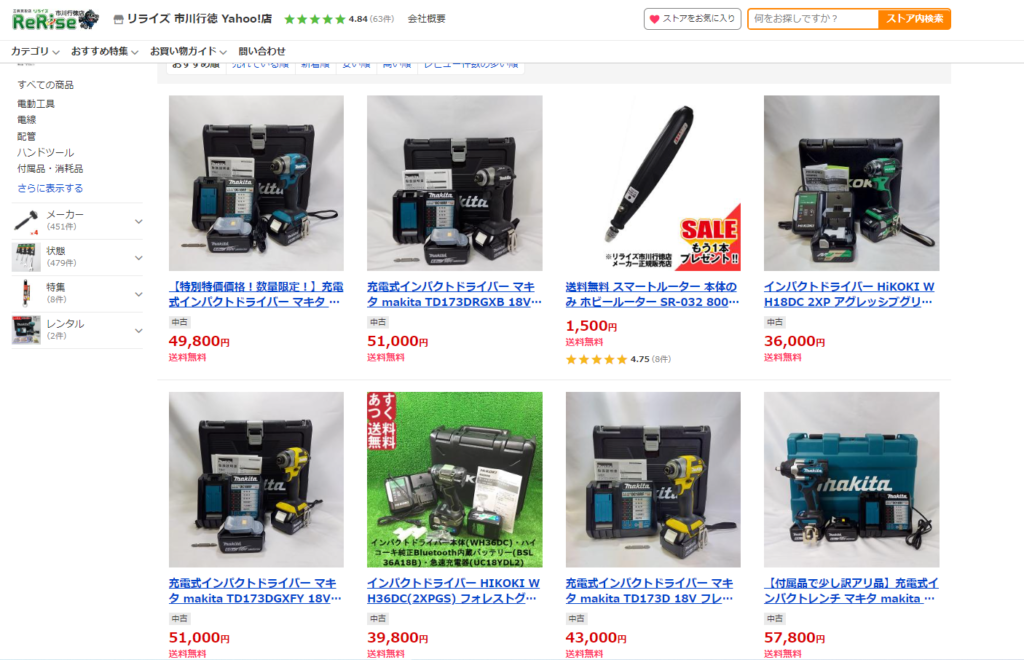 ヤフーショッピングの方は一部の商品ページとなりますが、