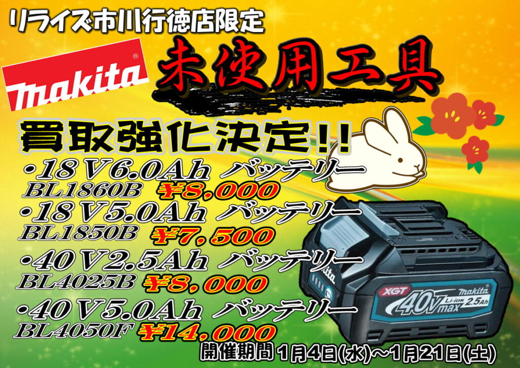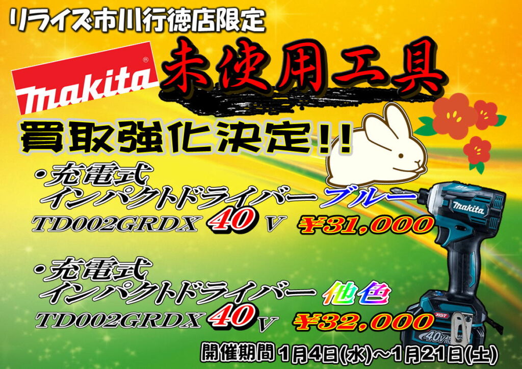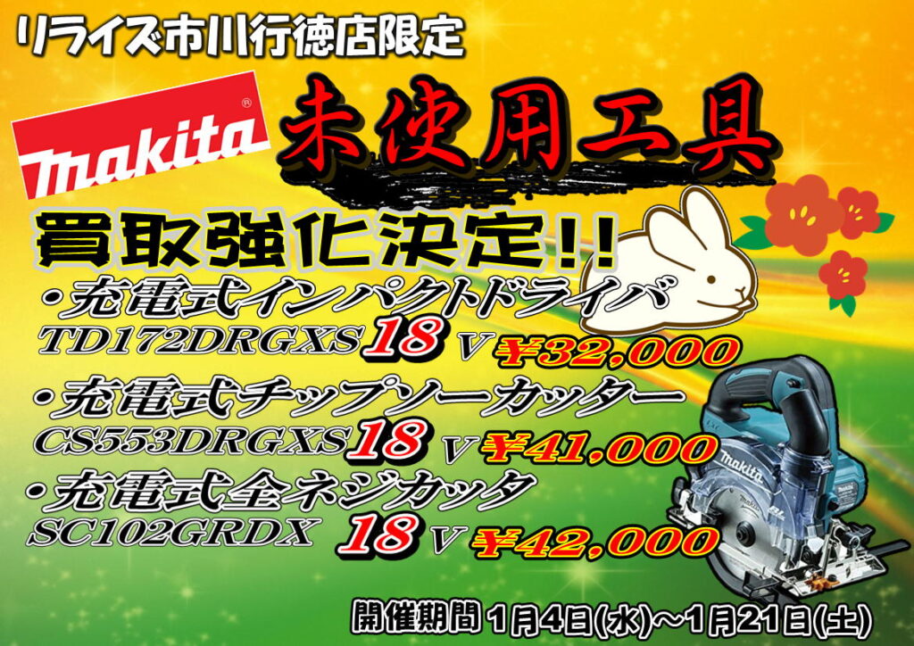 市川行徳店では未使用工具を多数買取強化させていただきます!