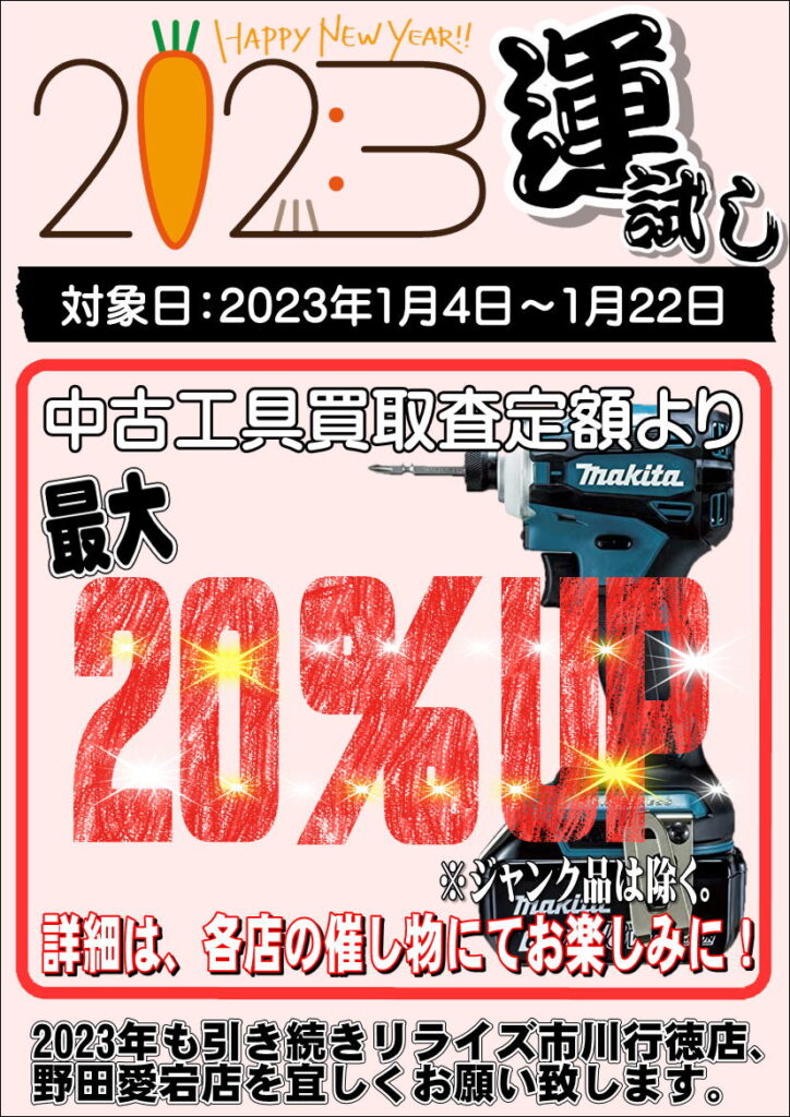 の店舗で工具を高く買ってくれるイベントを開催しているんだって