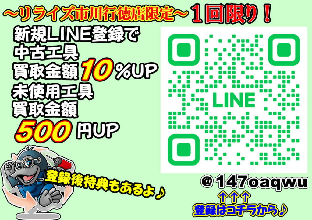 新規ライン友達追加で中古工具の買取が20%アップ!?