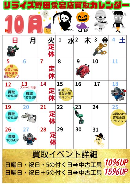 10月もリライズ野田愛宕店では恒例の買取イベントを開催致します!
