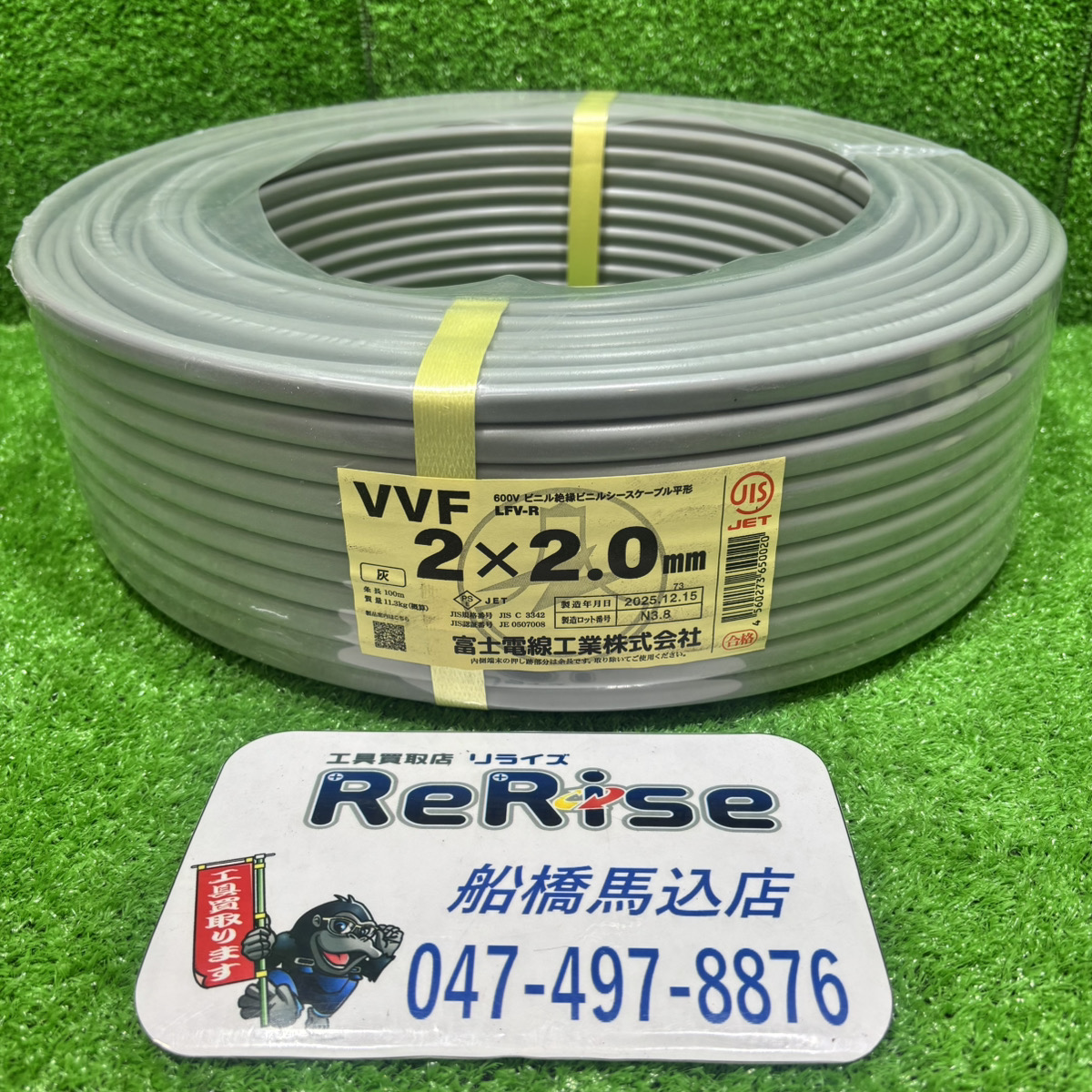 富士電線 VVFケーブル VVF202 2×2.0mm 灰 1巻 100m