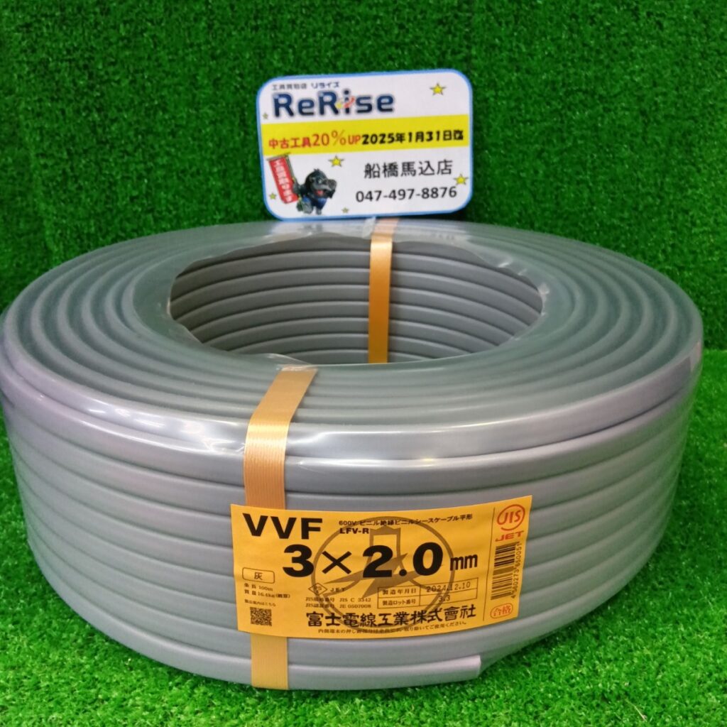富士電線 VVFケーブル 3×2.0mm(黒白赤)灰 100m VVF203