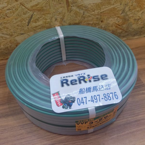 富士電線 VVFケーブル VVF203 公団仕様(白黒緑)3×2.0mm 1巻 100m