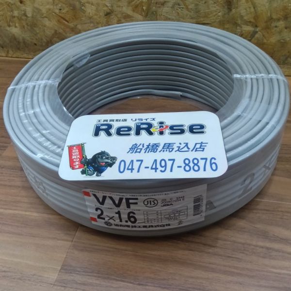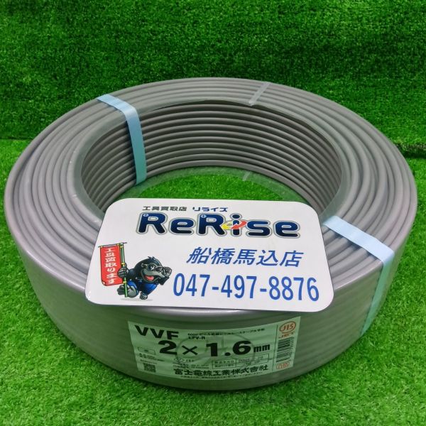 富士電線 VVFケーブル 2×1.6 白黒 灰色 1巻 100m