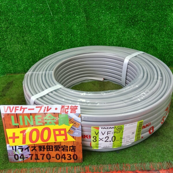 矢崎電線 VVFケーブル2.0mmx3芯 VVF3x2.0