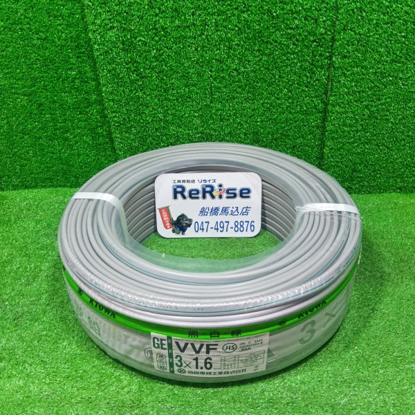 協和電線 VVFケーブル1.6mmx3芯100M 黒白緑 VVF3x1.6