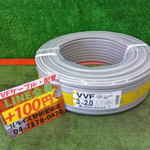 協和電線 VVFケーブル2.0mmx3芯100M VVF3x2.0