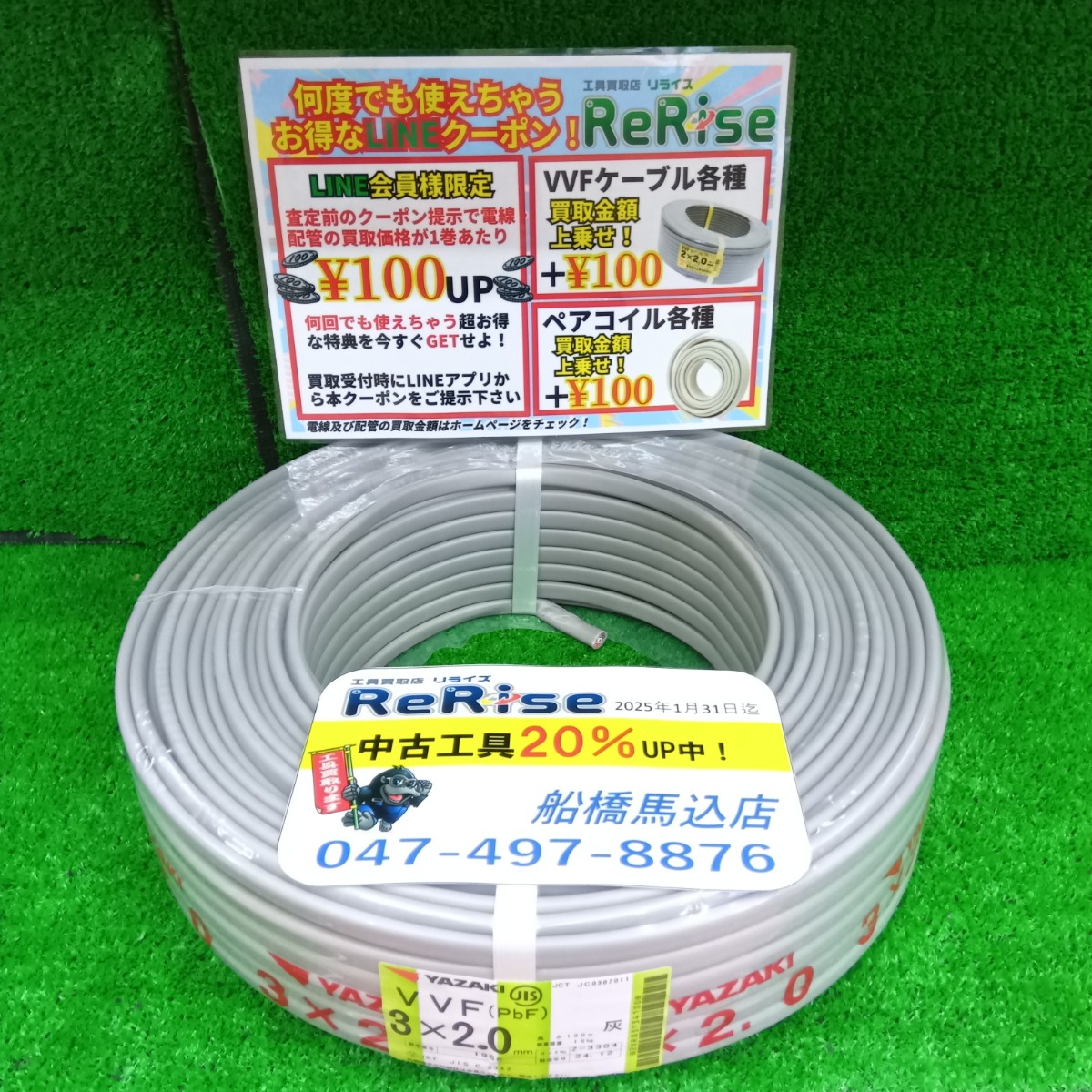 富士電線 VVFケーブル 2.0mm×3芯 VVF3×2.0