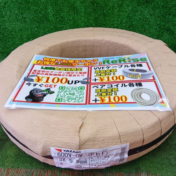 矢崎電線 600V CVケーブル50m 3×5.5m㎡
