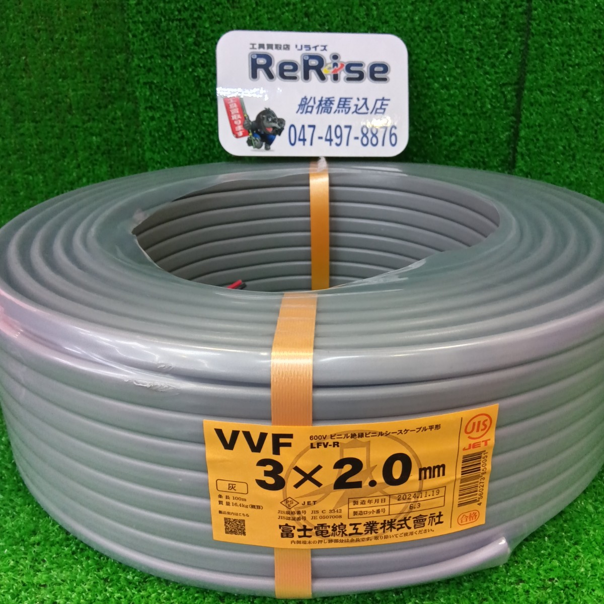 富士電線 VVFケーブル 2.0mm×3芯 VVF3×2.0