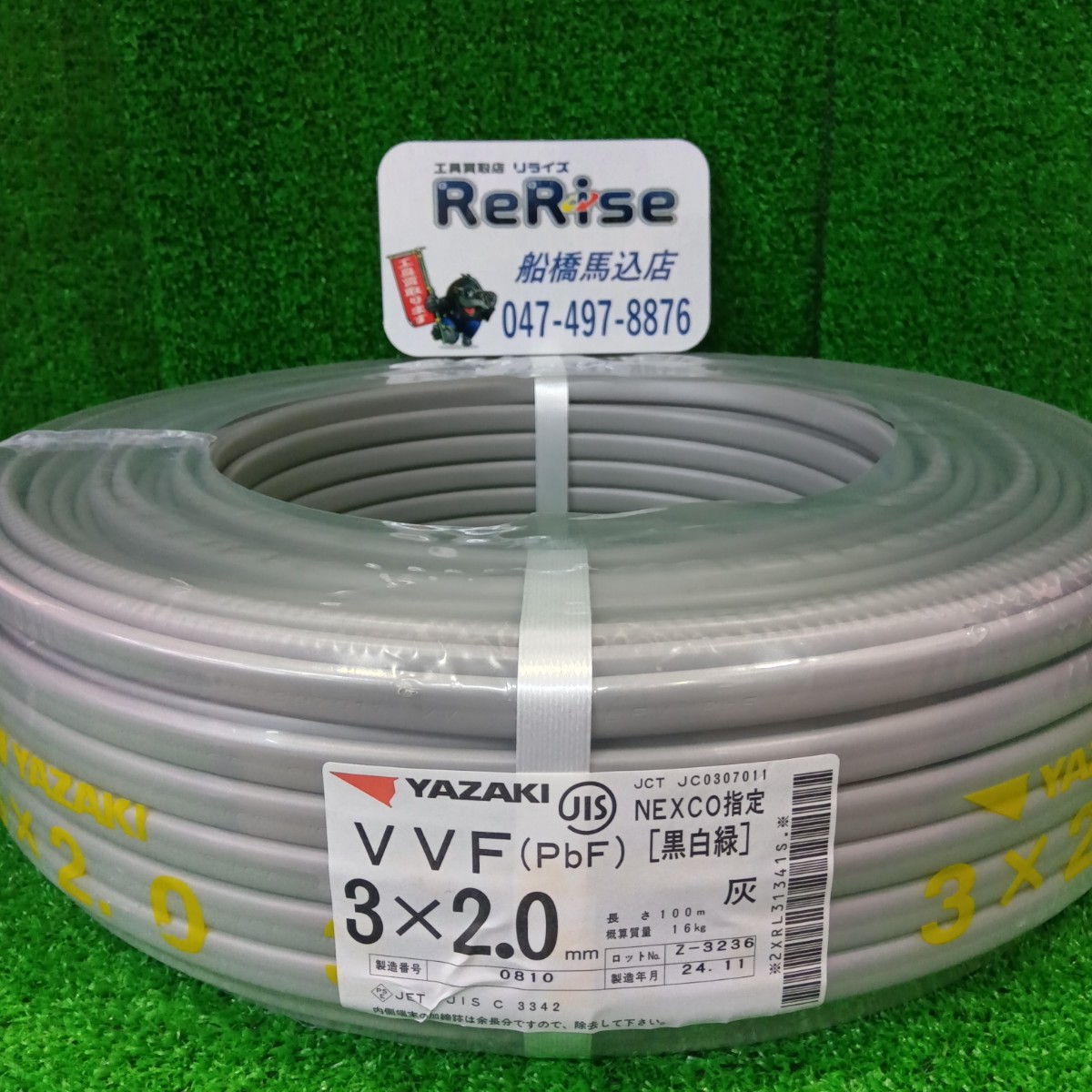 矢崎電線 VVFケーブル2.0mmx3芯 VVF3x2.0