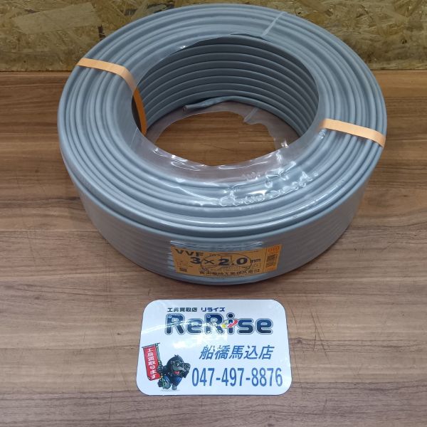 富士電線 VVFケーブル (黒白赤)灰 100m VVF203 3×2.0mm