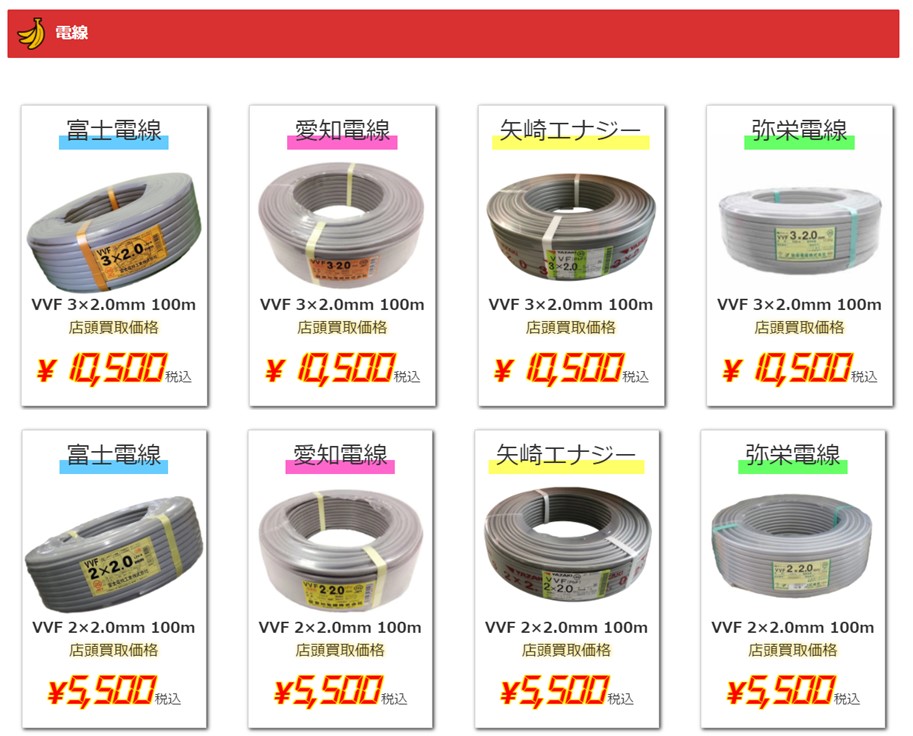 VVFケーブルの買取価格を大幅にアップいたしましたのでこの機会に是非当店までお売りくださいませ