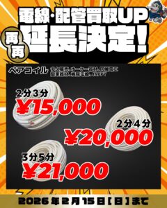 ご好評につき、電線・配管買取額UPキャンペーンを再・再延長致します!!!