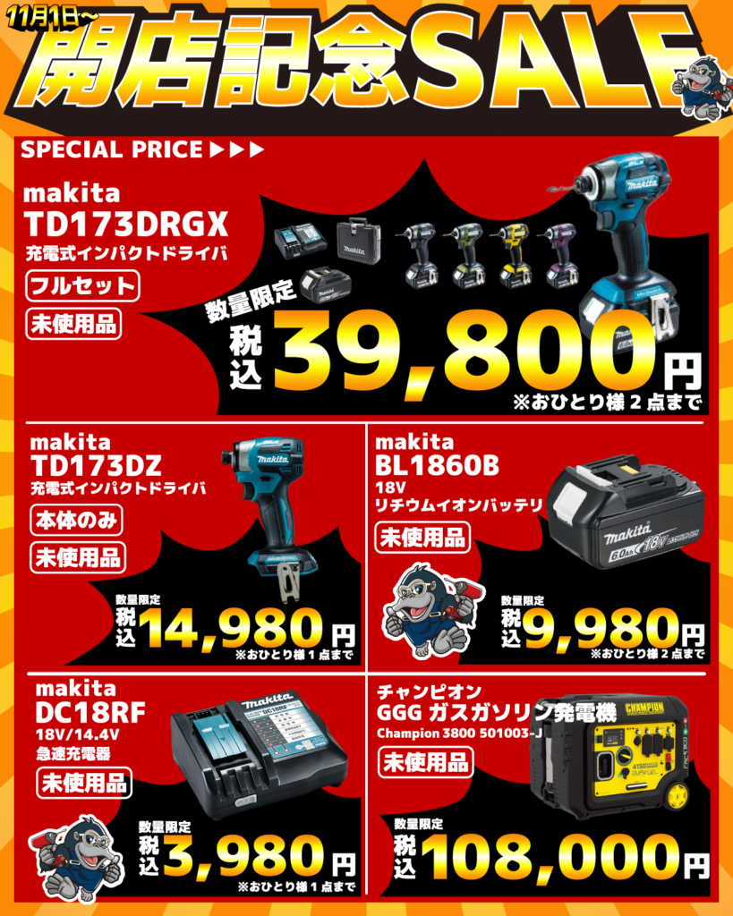 その他BL1860や、載せきれないセール品をご用意してお待ちしております!