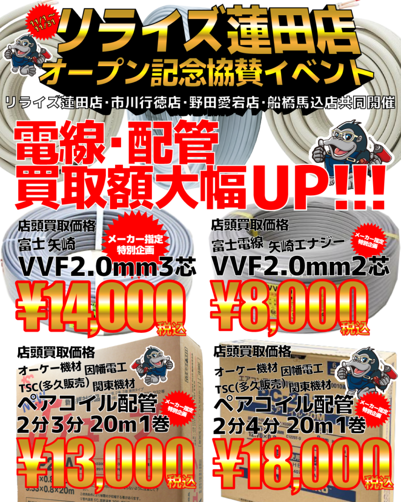 中古工具・電線は是非リライズ蓮田店へお売りください!!