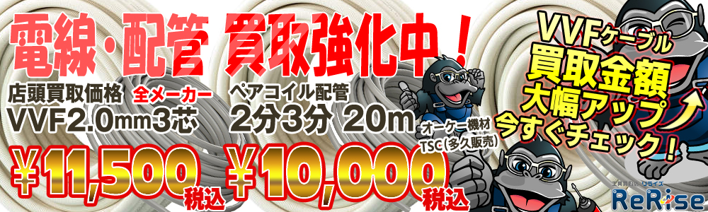 「工具買取専門店」ですが、電線・配管なども「高価買取」でお買取いたします。