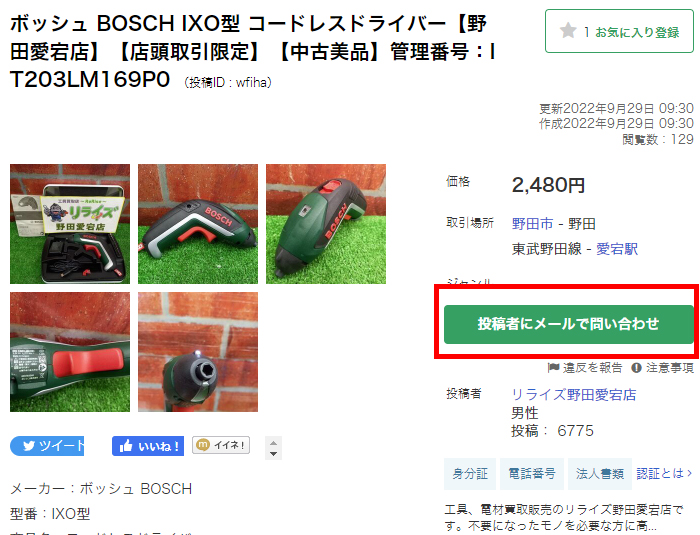 ジモティーでは希望する投稿に問い合わせを入れるところから取引が始まります。