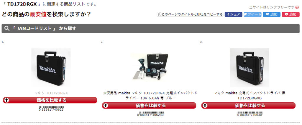 こういったサイトは販売ページ上で設定されているJANなどの情報から自動的に情報を収集しています。