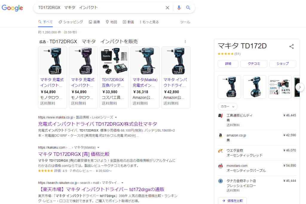 この型番は製品固有のものなので、今度はこの型番でネット検索することで付属品の最安値を調べられます。