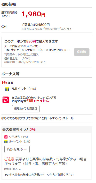 Yahooではクーポンやポイントが溜まるキャンペーン中のようです。