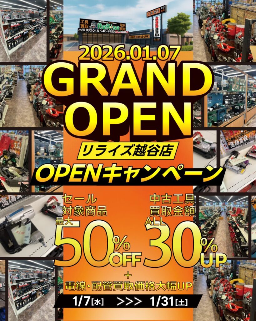 本日1/7(水)リライズ越谷店グランドオープン!!🔨