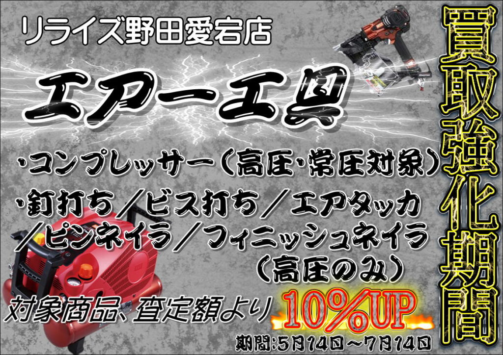 さて本日は5月14日~7月14日までピックアップ工具買取キャンペーンを開催します!