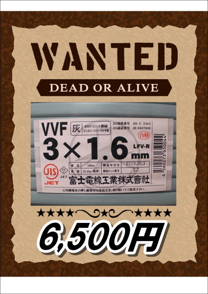 VVF3×1.6㎜のケーブルの買取金額が500円アップします!!