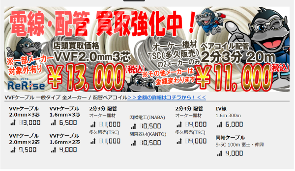 でVVFケーブル、ペアコイルを売りたいお客様は